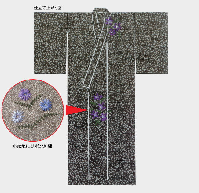 小紋の着尺にリボンで刺したり