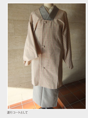 ナイロンと綿の交織で、上は道行コート、下は巻きスカートの2部式です。